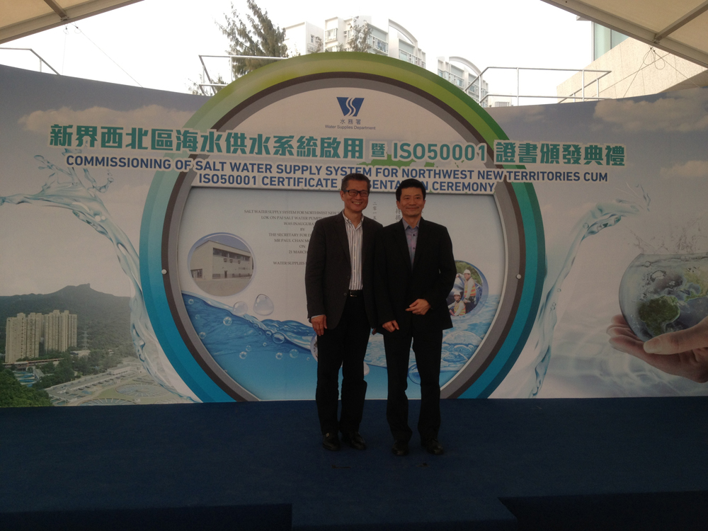 圖:發展局局長陳茂波(左)及水務署署長林天星(右)昨出席啟用儀式