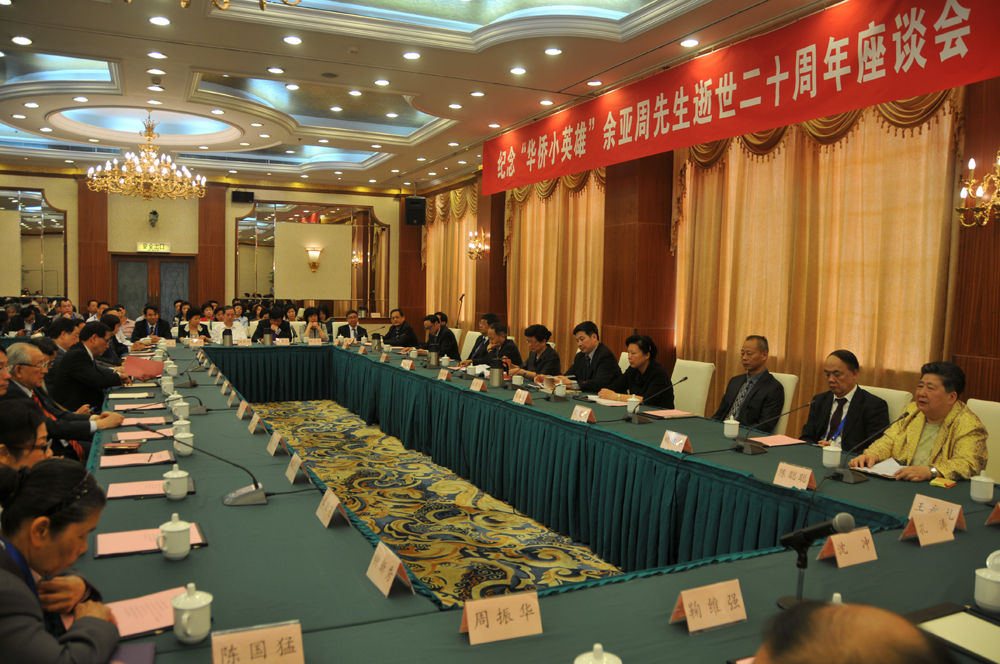 福建省政府僑辦主任楊輝主持了座談會。福州閩侯亞周小學校長林密、「41名華僑小英雄」代表王金銘、香港福建社團聯會主席吳良好、國務院僑辦副主任莊榮文、福建省副省長鄭曉松先後發言,余亞周遺孀陳聰聰致了答謝辭。
