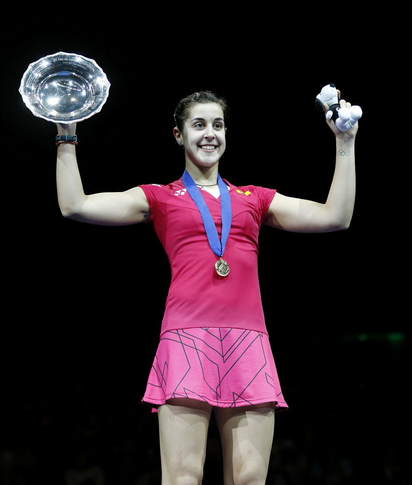 □3月9日,在英國伯明翰進行的2015年全英羽毛球頂級賽上,西班牙選手加露蓮娜瑪蓮再次書寫奇跡,她以2:1逆轉印度名將思恩拿,成為西班牙歷史上首位全英賽冠軍。加露蓮娜瑪蓮,一個會跳佛蘭明歌舞(Flamenco Dance)的女孩,卻在另一個舞台演繹?專屬於她的精彩。她用高超的球技、充沛的體能打破了亞洲人對於羽球女單項目的長期壟斷,讓世界羽球版圖延伸到了伊比利亞半島。「女版拿度」有力問鼎里約奧運羽毛球女單金牌。/大公報特約記者 史玄之