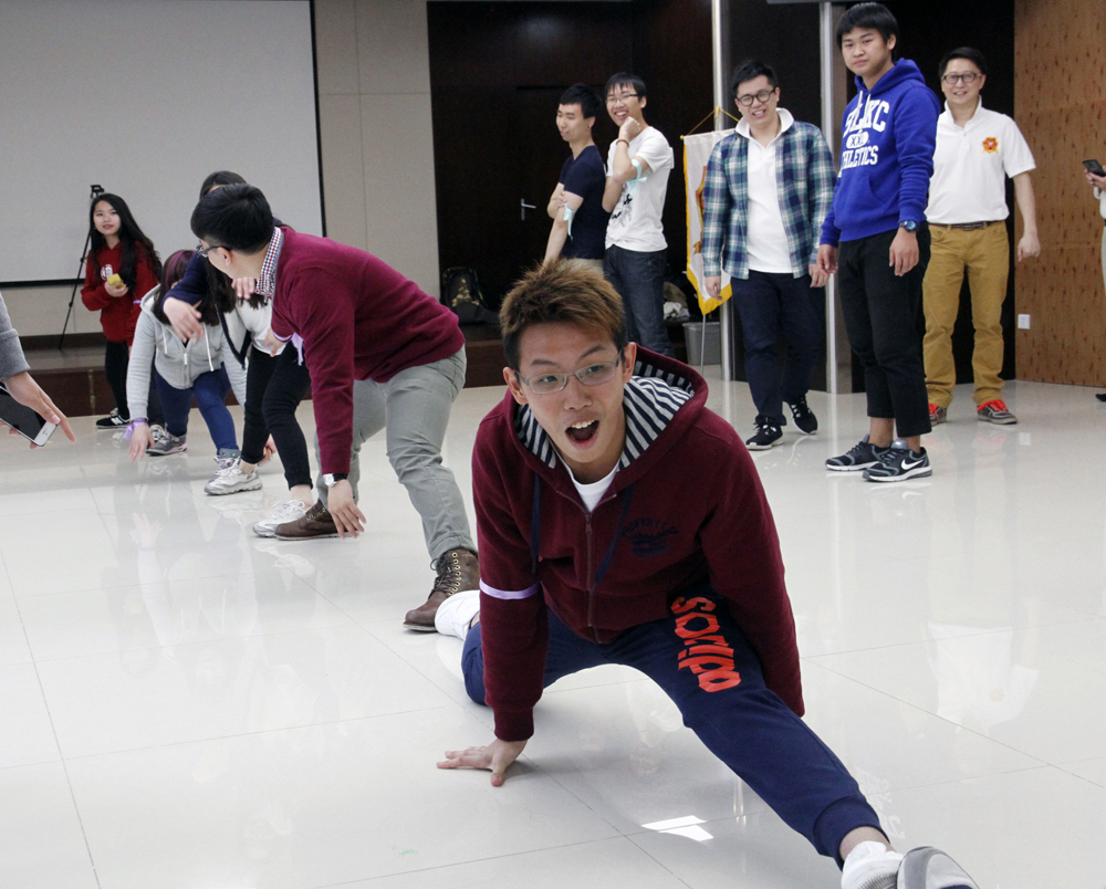 來自清華大學的李瑩瑩性格活潑,嗓音清脆有力,本是活動召集人之一的她自然成為當天遊戲的主持者。活動正式開始前,她先將所有港生分成3人一組,進行了名為「松鼠跑」的warm up。「大家很快就會熟悉起來。」手拿?咪、滿場走動的李瑩瑩說。