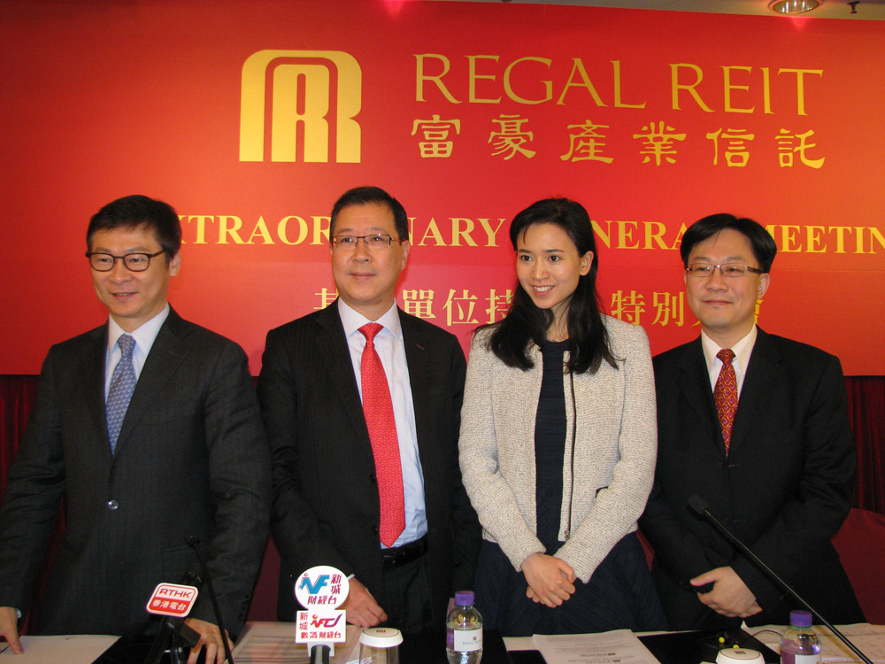 圖:左起富豪產業信託董事范統、董事林萬鐮、副主席羅寶文及董事陳陞鴻