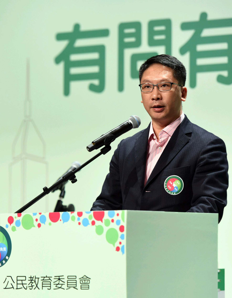 「有問有答基本法問答比賽」昨日於柴灣青年廣場舉行,是次比賽為基本法頒布二十五周年慶祝活動之一,比賽分為小學組、中學組及公開組三組。本月初才出任公民教育委員會主席的彭韻僖致辭表示,欣悉是次比賽參加人數超過一萬二千人,比去年更多。委員會未來將會聯同民政事務局繼續舉辦活動,向市民重點推廣「尊重與包容」、「負責」、「關愛」等核心公民價值及維護法治精神等信息,包括推廣基本法。