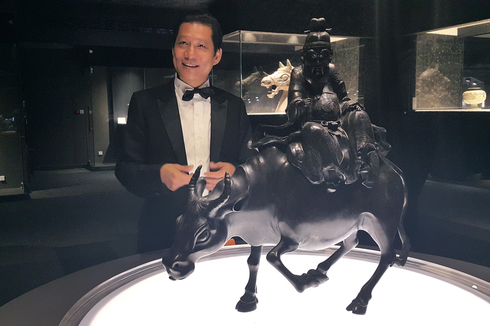 蔡振強曾舉債購買大量流落於海外的珍貴文物,例如在日本京東中央拍賣會拍得唐三彩白馬,創世界唐三彩單件最高拍賣紀錄。但當面對新加坡博物館開出天價欲收購宋代影青瓷「龍舟競渡」時,他則明確表示「出多少錢都不賣」。而「清乾隆銅老子出關香薰」這件珍貴文物的背後更有?意味深長的故事。這件珍寶與圓明園十二獸首同屬圓明園舊藏,一八六○年八國聯軍入侵後流失。當蔡振強得知這件國家級寶物在法國現身時,多次與藏家溝通,最終在二○一三年不惜用重金從一位法國將軍的後人處直接購回。這件珍寶不僅製作精細,將「老子出關、紫氣東來」的吉祥意象表達得惟妙惟肖,也頗具歷史和文化研究價值。
