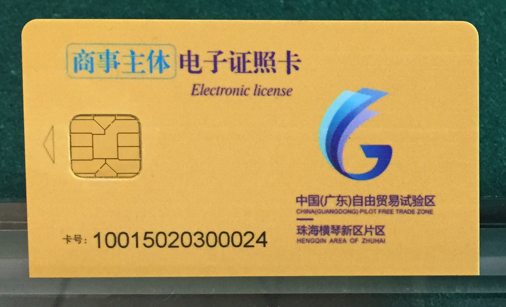 橫琴新區工商局局長吳創偉表示,「商事主體電子證照卡」是以營業執照信息為基礎,集合企業其他登記、許可、備案、資質認證等信息,經國家密碼管理局認證可作為數字證書使用的「企業電子身份證」,是橫琴自貿區又一重要改革項目。今後,企業憑藉該卡將在橫琴「辦事一卡通」,逐步實現「一卡在手、服務全有、政商共用」。