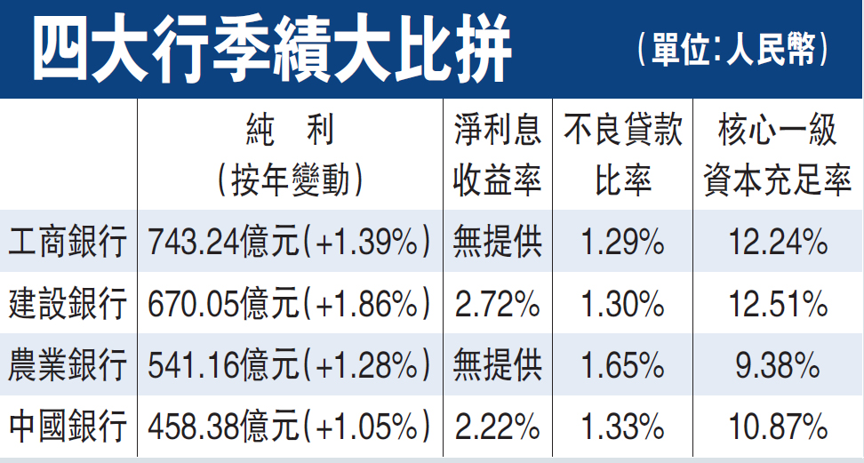 四大內銀首季僅多賺1%