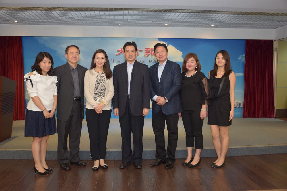 【大公報訊】太子珠寶鐘錶有限公司主席鄧鉅明博士、副主席兼執行董事鄧宣宏雁、市場部經理朱潔茵及高級主任劉穎勳一行,昨日到訪《大公報》。《大公報》總經理盛一平及助理總經理方明珊對貴客到訪表示熱烈歡迎,並熱情地向各人介紹了《大公報》百年來辦報理念和發展歷史傳奇;鄧鉅明伉儷對《大公報》百年來在促進國家進步發展進程,以及作為資深媒體對社會和國家所擔當的角色和影響力深表讚許,並冀日後能加強雙方交流合作,共同為促進香港繁榮發展做出貢獻。