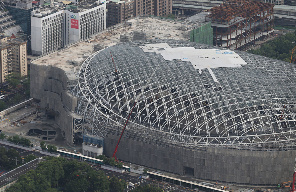 圖:大巨蛋案爭議沸沸揚揚,是否拆除受到全民矚目。大巨蛋工地近日持續趕工\中央社