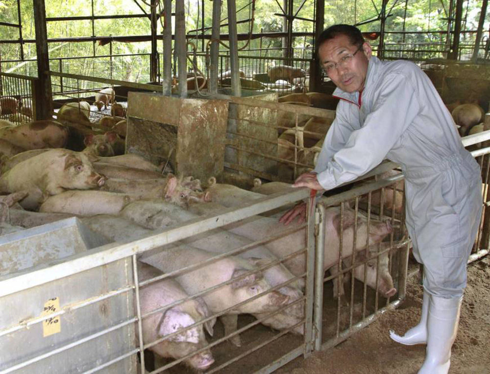 圖:日本靜岡縣養豬場場主北川用綠茶餵豬 日本時報