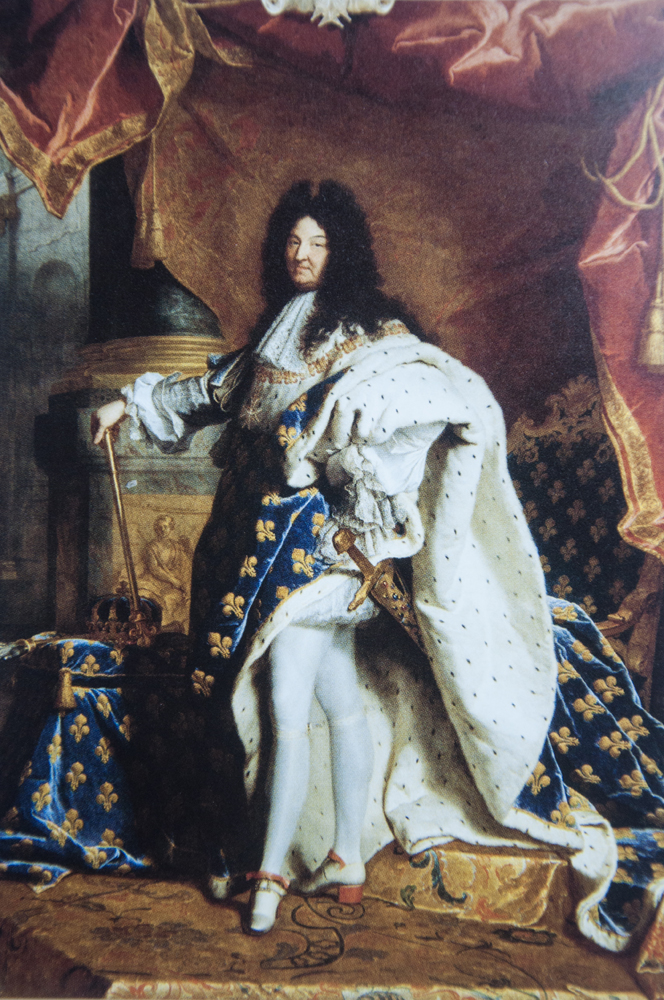 法國國王路易十四(一六三八—一七一五),這個被後世稱作「太陽王」的專制君主有?與其豐功偉績不相稱的身高(一百六十公分),在遇到高跟鞋時如獲至寶,他命工匠將高跟鞋提高至五吋(約十三公分),並把鞋跟和鞋底染成紅色以彰顯自己卓越的地位。法國巴黎羅浮宮美術館展出的《路易十四全身像》中,他身披長袍,頭戴高聳假髮,手執權杖,腰佩寶劍,器宇軒昂的高傲姿態,腳上正穿?那雙紅底高跟鞋,顯示自己的高大威猛。