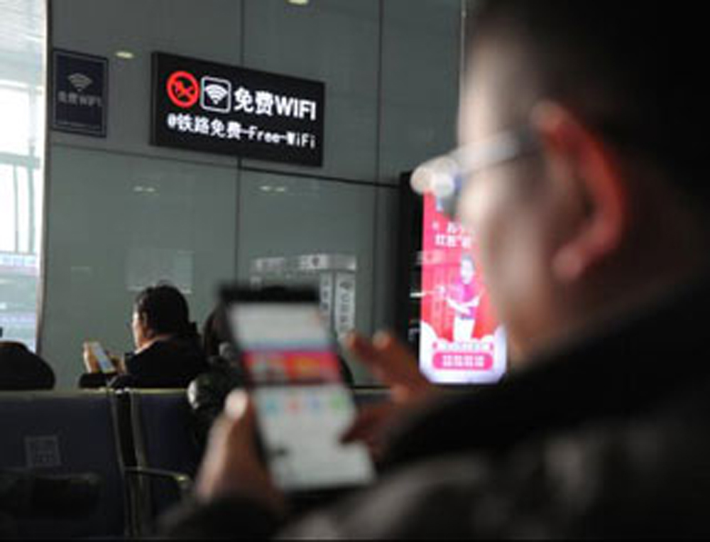 圖:到2017年底,中國直轄市、省會城市等主要城市寬帶用戶平均接入速率超過30Mbps。圖為旅客正用車站內WiFi上網/網絡圖片