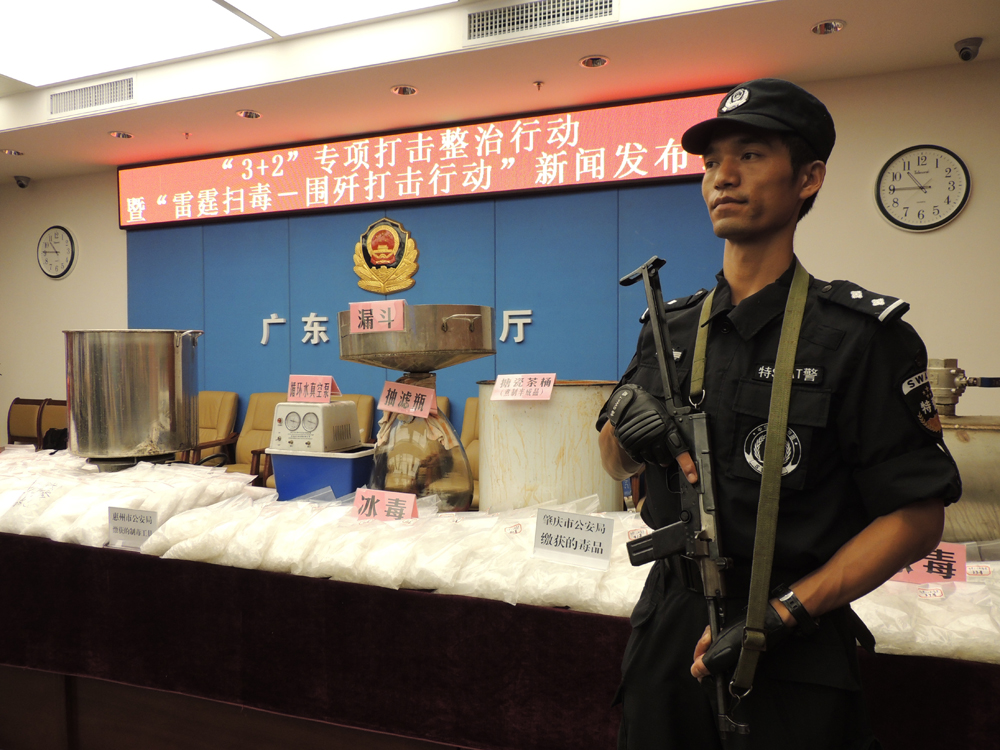 省公安廳禁毒局局長鄧建偉表示,在5月14日、15日連破三宗「雷霆掃毒─圍殲行動」特大毒品案件中,落網的48名嫌疑人中有28名是陸豐或惠來籍人,特別是陸豐甲西鎮籍涉毒人員竟佔11名,惠州一案刑拘的13名嫌疑人中有11名是陸豐籍,並聯手台灣毒師「強強聯合」。這些團夥製販毒「全鏈條」已遍及深圳、惠州、東莞、中山、肇慶、汕尾、珠海乃至福建等地。