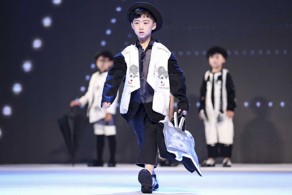 5月31日,在「六一」國際兒童節來臨之際,第三屆「中國.織里」全國童裝設計大賽總決賽在浙江湖州織里舉行。圖為童裝小模特在舞台上展示選手余思蓉的作品《小小人也有大世界》。 中新社