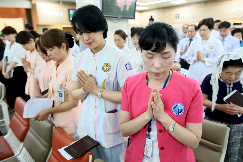 圖:首爾一家醫院的工作人員12日為MERS病人祈禱/路透社