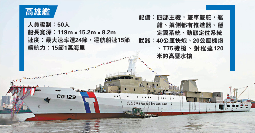 【大公報訊】據聯合晚報報道:台灣海岸巡防署最大噸級巡防救難艦高雄艦本月6日成軍,11日在全程保密下出海,擔綱執行「碧海操演」,首航南沙太平島。海巡署長王崇儀登艦隨行,除慰勞島上士兵端午節、頒發加菜金外,也將視察太平島新建碼頭進度。