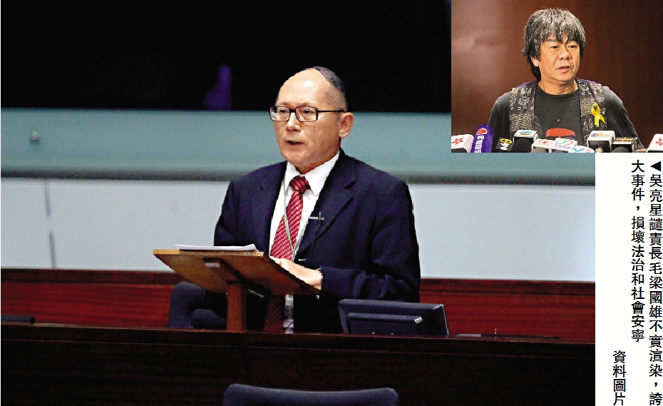 金融界立法會議員吳亮星昨天出席電台節目時回應有關事件。他表示,梁國雄聲稱有中間人以一億元向他買票,是不實的渲染、作大事件,破壞香港法治,影響社會安寧,行為應被譴責。他又說,長毛作為一名立法會議員,應考慮其言論對公眾造成的影響,「這種做法絕對是任何人都不會接受的」。他認為,有關事件或令立法會、政治人物,甚至全香港蒙羞。