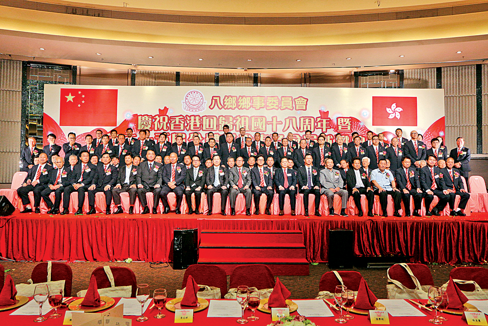 元朗八鄉鄉事委員會日前(6月18日)假九龍灣國際展貿中心隆重舉辦慶祝「香港回歸祖國十八周年暨第二十五屆全體村代表及會員就職典禮」。新界鄉議局副主席張學明、林偉強,立法會議員梁志祥,中聯辦新界工作部副部長張肖鷹,元朗民政事務專員麥震宇,惠州巿統戰部副部長陳滌成等蒞臨主禮。鄧瑞民榮膺主席,他強調,今後實事求是、群策群力,將會務及村中各項事宜做到更好。同時,堅定不移支持特區政府依法施政,並呼籲大家用自己手中的選票,將否決政改的反對派趕出議會,以保香港繁榮穩定,巿民安居樂業。