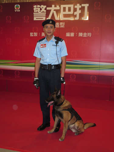 【大公報訊】記者吳珊珊報道:黃宗澤(Bosco)、黃浩然、朱千雪及陸永等,昨在電視城為新劇《警犬巴打》試造型,另一女主角鍾嘉欣因身在橫店開工而缺席。Bosco身穿警察制服帶領警犬登場,威風又有型,期間一警犬表現活躍搶咪,Bosco即抵死笑說:「鍾嘉欣,講幾句。」