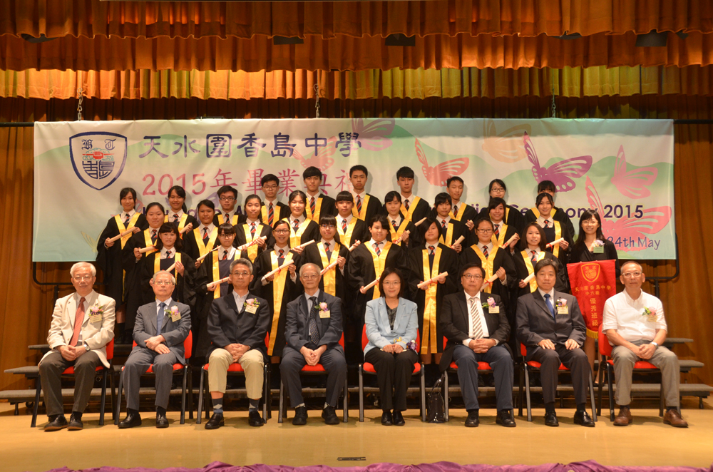 天水圍香島中學於5月24日舉行「2015年中學畢業典禮」,由香港中文大學副校長潘偉賢主禮,今年共有83名中六學生畢業。