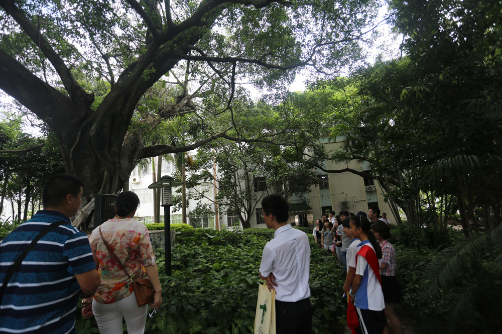 圖:香港傳媒學子參觀光祖中學「抗戰樹」\大公報記者魯朋瓚攝