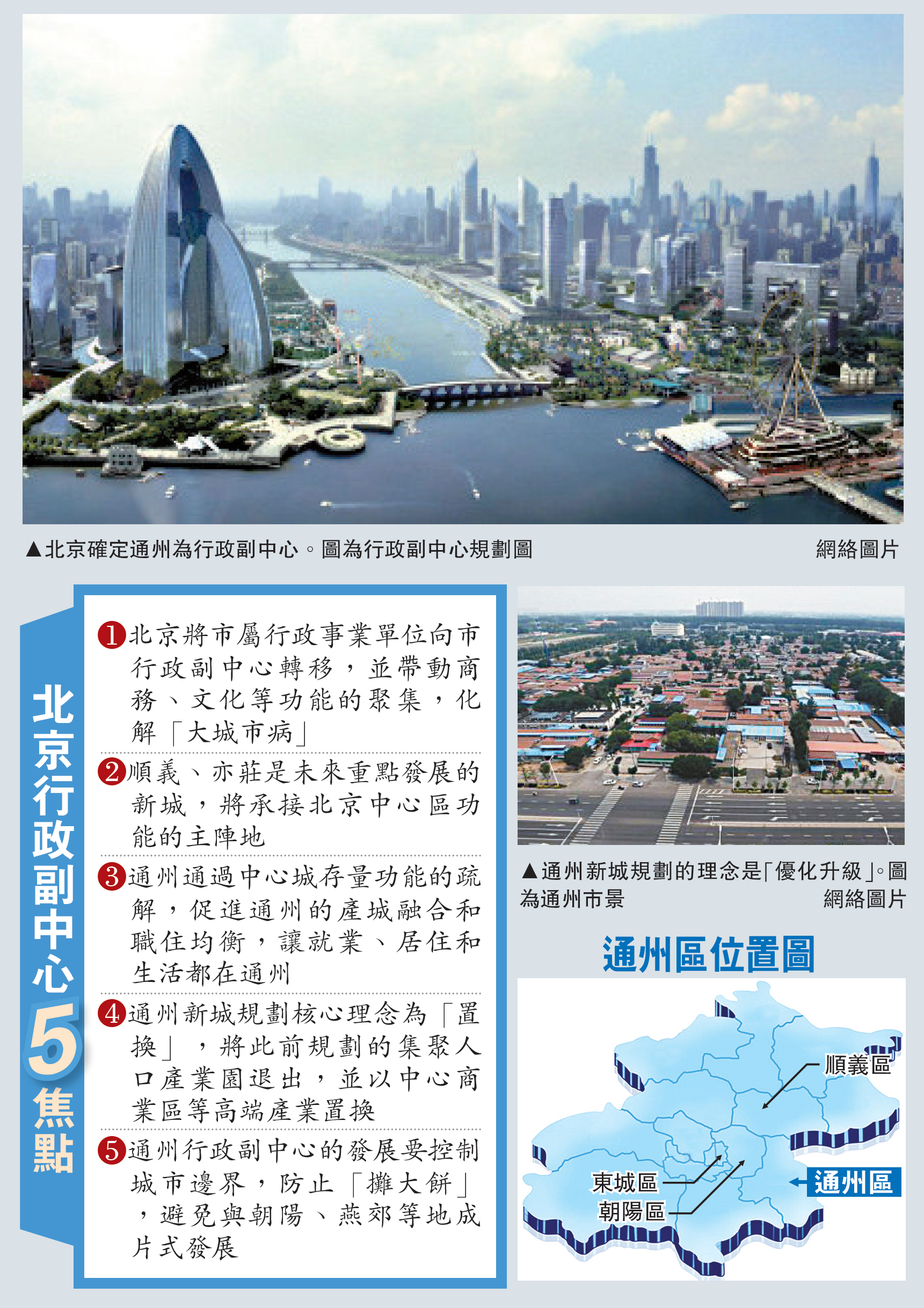 圖:北京確定通州為行政副中心。圖為行政副中心規劃圖 /網絡圖片