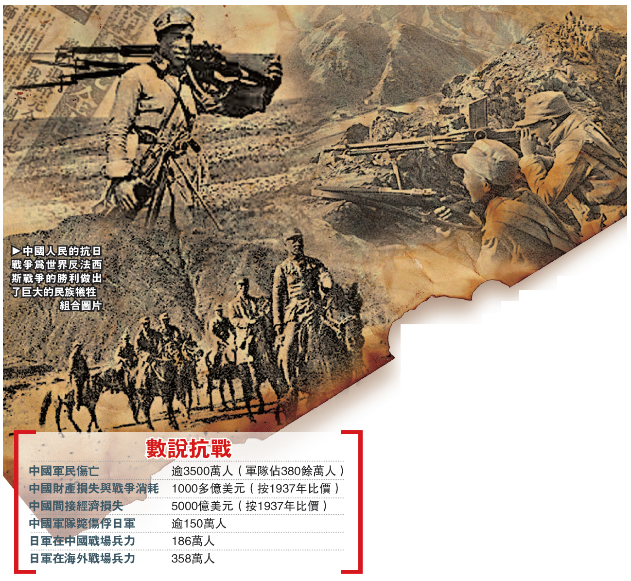 圖:中國人民的抗日戰爭為世界反法西斯戰爭的勝利做出了巨大的民族犧牲/組合圖片