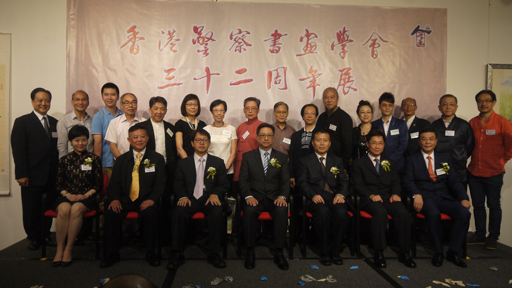 中聯辦警聯部副部長李民真、警務處處長盧偉聰、勞工及福利局副局長蕭偉強、警務處助理處長林文榮、香港警察書畫學會主席李雅麗、學會名譽副會長黃黑蠻、陳偉泉出席並主禮了開幕儀式。