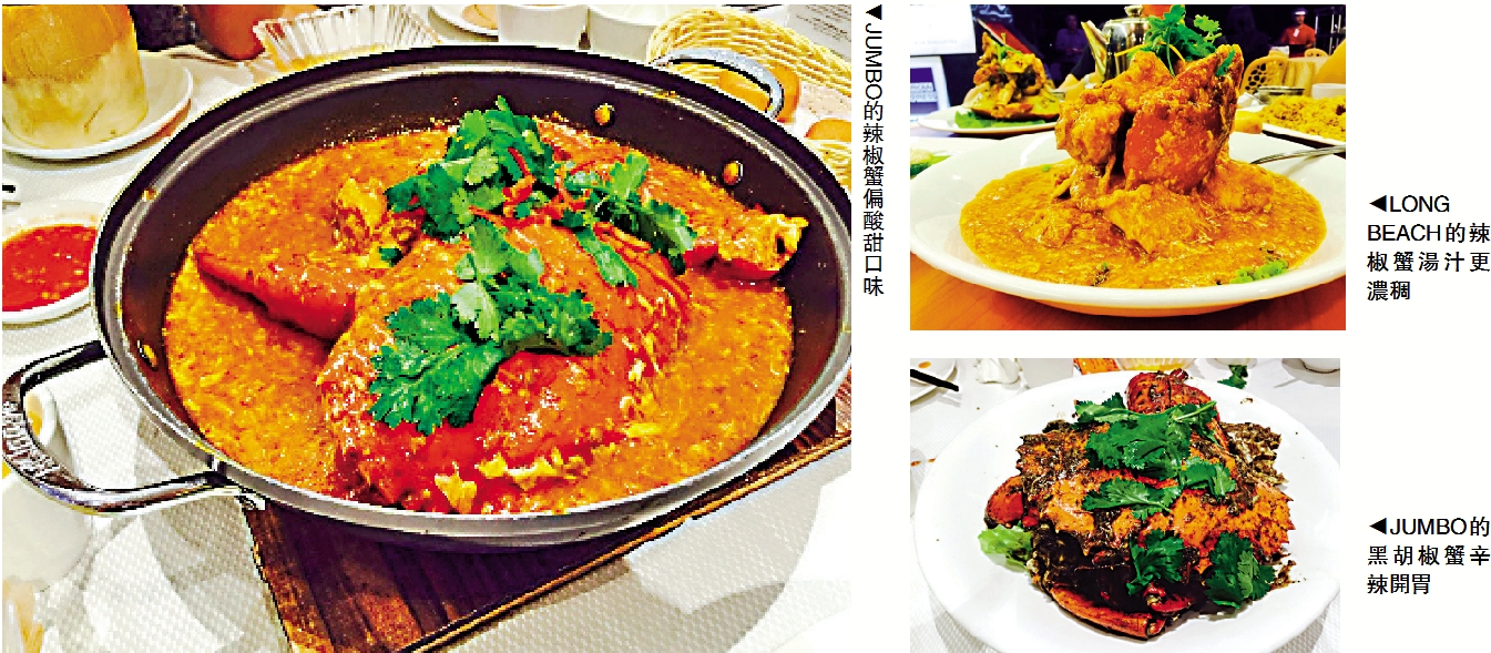 位於東海岸的LONG BEACH(長堤)也是吃辣椒蟹的名店。店家還自稱是胡椒蟹的創始人。如在JUMBO嘗試過黑胡椒蟹的話,則可試試這裡的白胡椒蟹。因白胡椒本身是待胡椒漿果成熟以後再烘乾的香料,口味比黑胡椒柔和,所以蟹肉的味道會更突出。