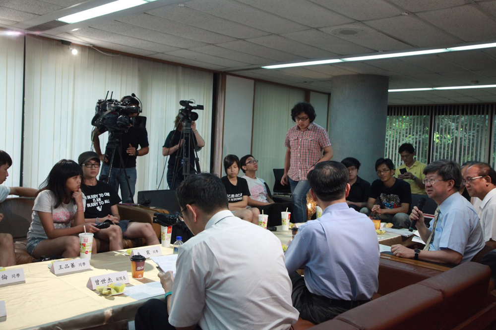 然而,反課綱人士堅持要撤銷新課綱。反課綱學生和群眾於7月31日翻越入教育部圍牆內,與警方對峙至今。教育部長吳思華3日在圖書館和反課綱學生及教師代表對談,包括7名反課綱學生代表、3名教師等人出席。
