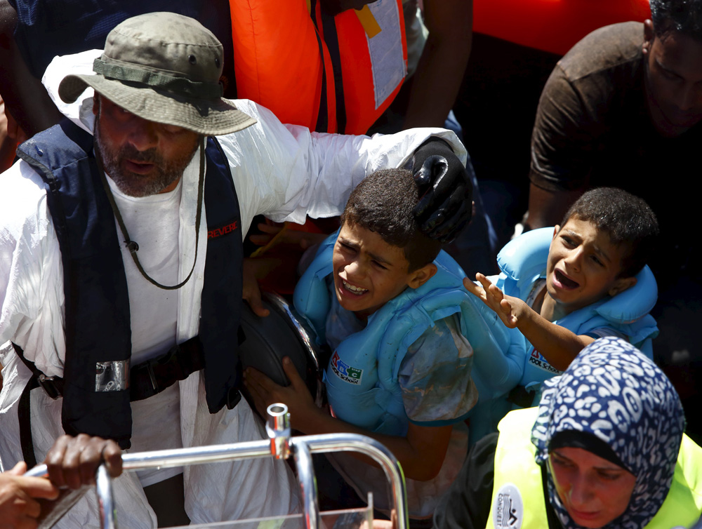 圖:6日在利比亞海岸被救起的難民兒童嚎啕大哭\路透社