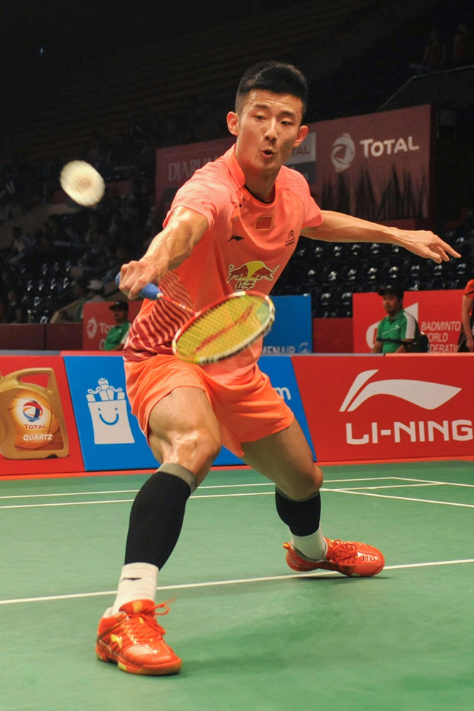 圖:諶龍在網前回球/新華社
