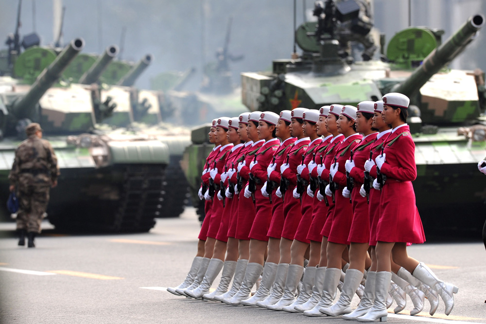 2009年國慶60周年閱兵方陣中有三支「娘子軍」:三軍女兵方隊、女民兵方隊、女飛行員梯隊。這是新中國歷次閱兵中女兵方隊最多的一次,其中三軍女兵方隊和女飛行員梯隊是首次參加。圖為女民兵準備受閱。 資料圖片