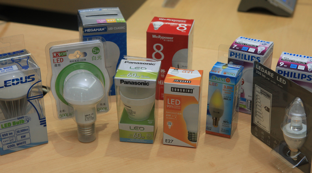 圖:消委會測試市面十款LED燈泡,發現光效參差 /大公報記者蔡文豪攝