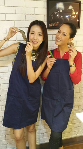 【大公報訊】樂壇新人梁雨恩(Cathy)日前與貝安琪(Ankie)跟廚師學藝,二人原來平時對入廚亦有興趣。她們合作了乾炒蝦米Tabasco雞腿肉意粉和雙沙老虎蝦。對於美食當前,二人亦沒有戒口及節食減肥,Cathy還說:「我憑自信和意志力去克服一切,這樣就會食極都不會肥!」