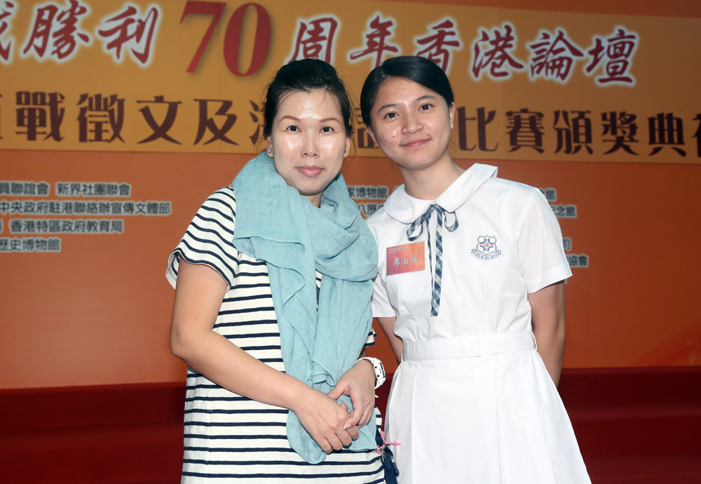 圖:一等獎作品獎得主廖淑怡(右)與老師梁家儀(左)合照