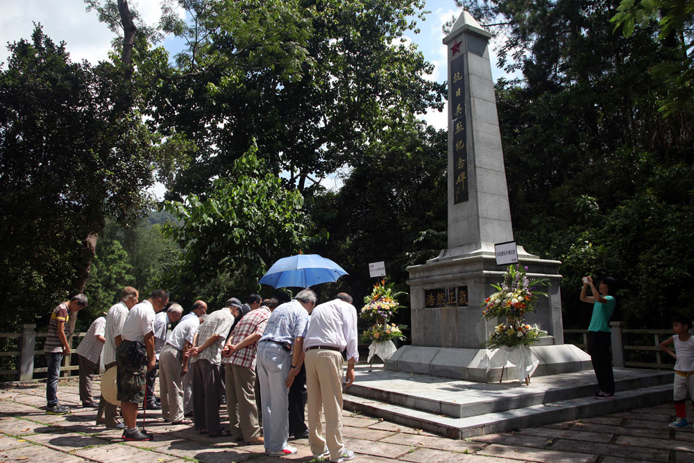 圖:烏蛟騰村民到抗日英烈紀念碑前憑弔 資料圖片