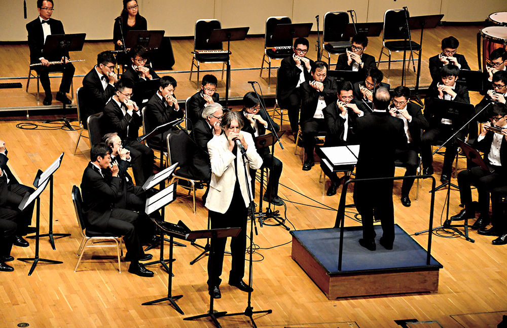 圖:李維和香港口琴協會樂團演奏他自己的口琴協奏曲