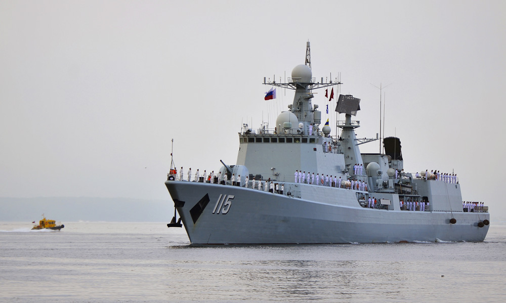 圖:參加中俄軍演的中國驅逐艦「瀋陽」號\俄塔社