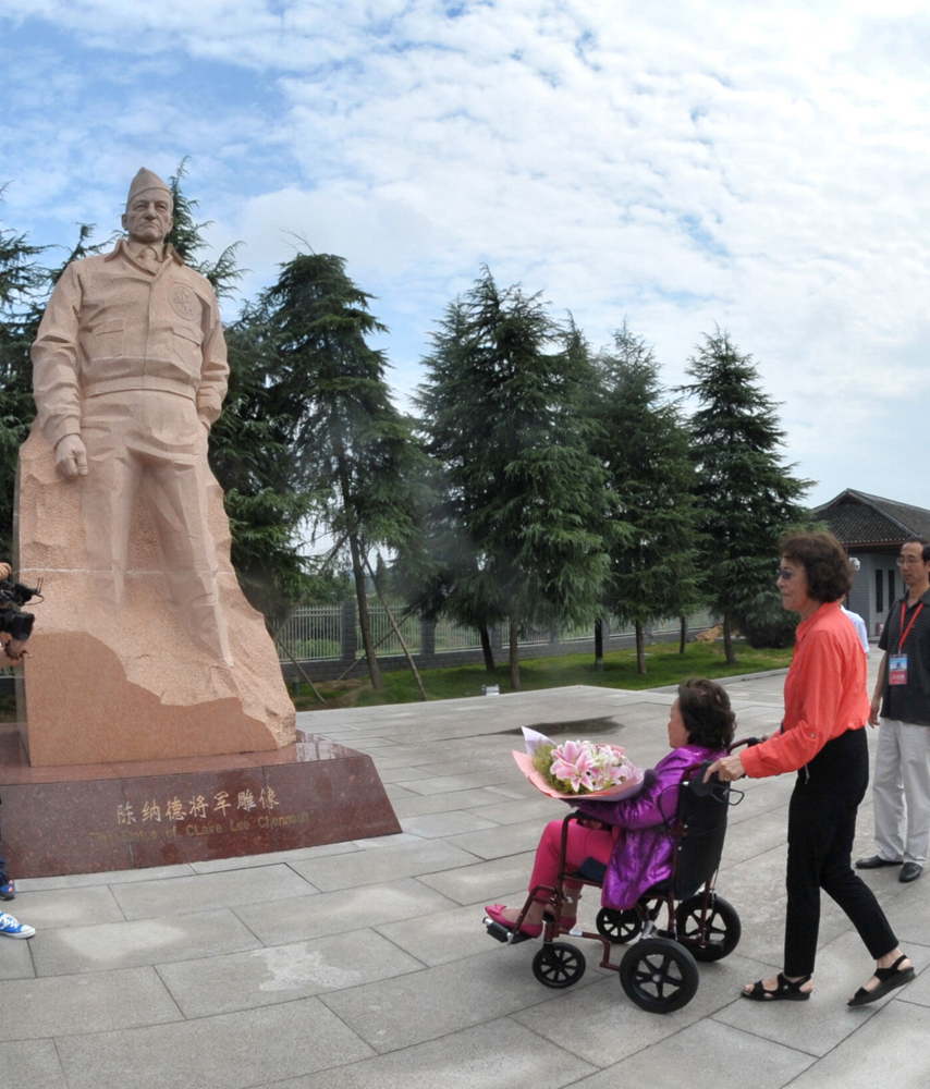 1937年,陳納德將軍不遠萬里來到中國,應邀出任中國空軍總顧問。1941年10月至1945年8月,陳納德將軍率領的飛虎隊共擊落、擊毀日機2600架,擊沉、擊傷敵艦船44艘,擊毀軍用商船223萬噸位,擊斃日軍66700人。