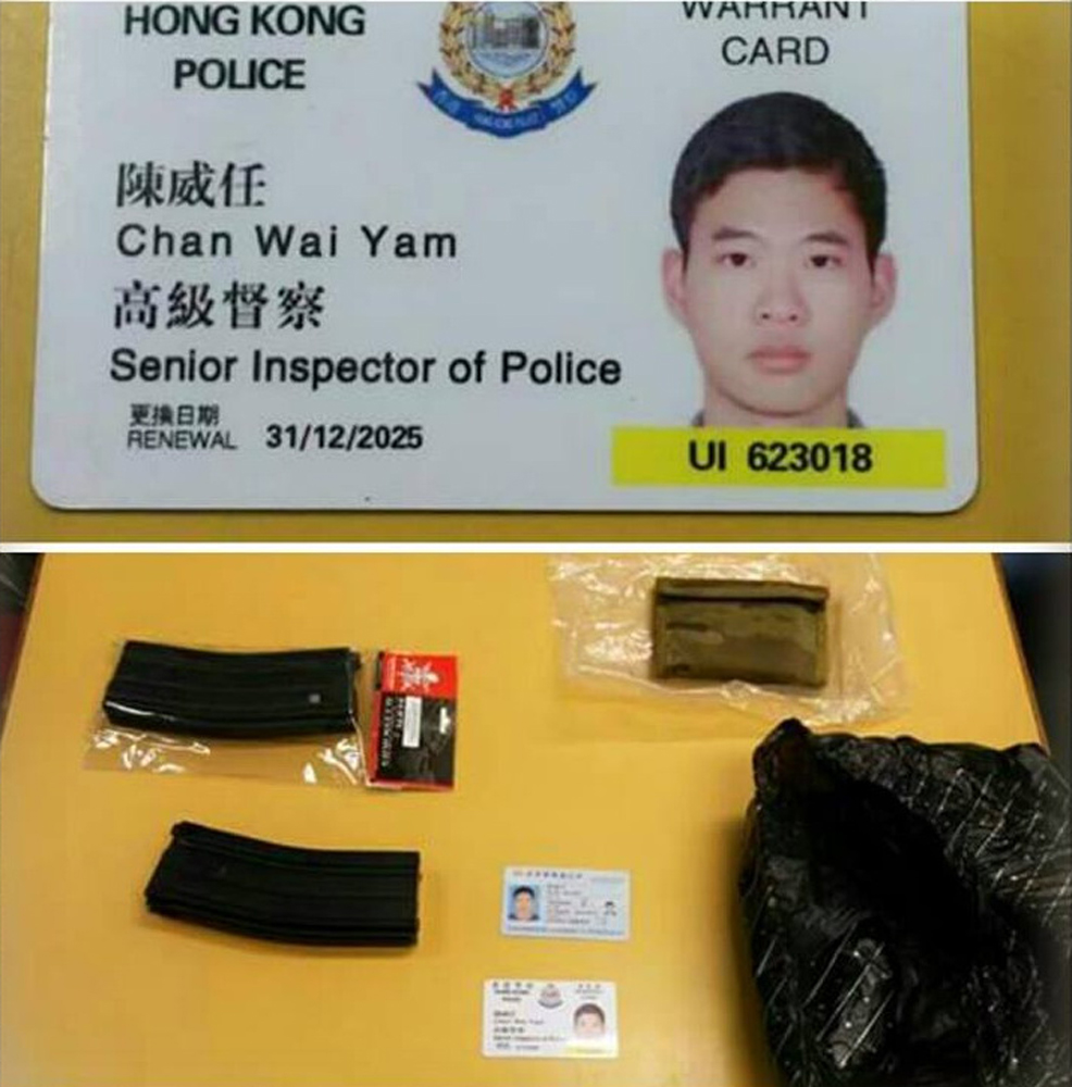 案發昨凌晨四時,涉案兩名內地男子均持雙程證來港,其中一人姓李(17歲),警方在他身上搜出四枝氣槍和一張懷疑偽造香港身份證及回鄉證。另一名被捕男子則姓陳(20歲),警員除了在他身上搜出一枝氣槍外,更搜出一張偽造香港警察高級督察委任證。