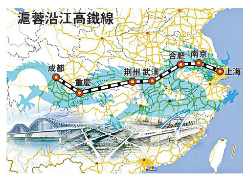 【大公報訊】據荊楚網報道:武漢鐵路局消息稱,將有一條規劃中的東西向高鐵大動脈──沿江高鐵,起於上海,經南京、合肥、武漢、重慶等城市,終點在成都,串聯長江沿線的22個城市。