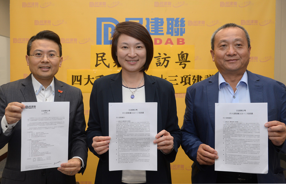 李慧?續指,民建聯亦希望透過與廣東合作,給香港專業人士、青年人創造更多機會,例如安排香港年輕人到內地政府部門掛職,在自貿區設立粵港澳青年創業平台及交流培訓基地,增進彼此交流。代表團將提出四大關注重點及13項具體建議,訪問團成員還有民建聯監委會主席盧文端、副主席陳勇、陳克勤、周浩鼎、監委會副主席陳維端等。