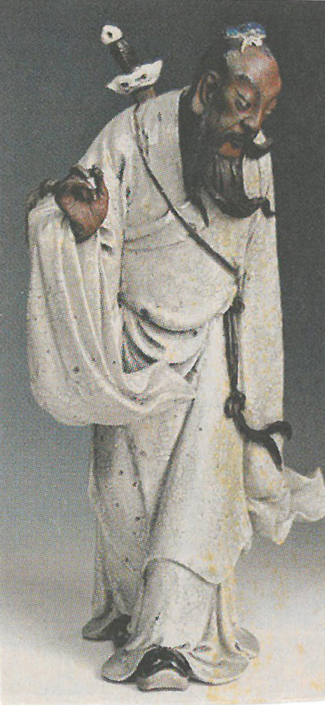 自道光至光緒年間,出現以石灣陶塑鴨子著名的黃炳始,相繼有黃古珍、劉佐朝、陳渭岩、潘玉書、霍津(尤以塑牛名)等名家,風格各異,但所陶塑人物,生動傳神,呼之欲出。解放後,最使識者矚目的是劉傳(一九一五年生),推詡為潘玉書後第一人。附圖就是一位收藏家所藏的劉傳代表作之一《呂洞賓》。