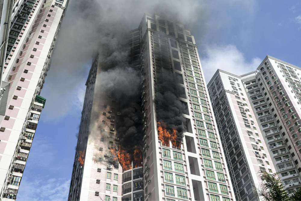 圖:22日,深圳羅湖區一住宅單位發生火災,火勢猛烈,波及多個單位 中新社