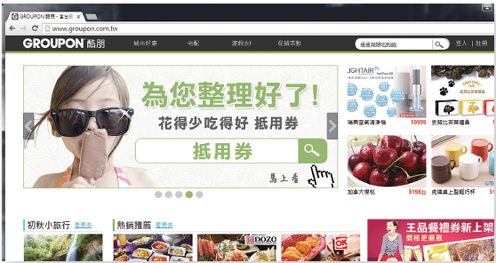 網站與當地商戶合作,搜羅商品優惠供網民在網上訂購,從中賺取佣金及廣告費,早早發現「團購」有利可圖的GROUPON因此成了大贏家。
