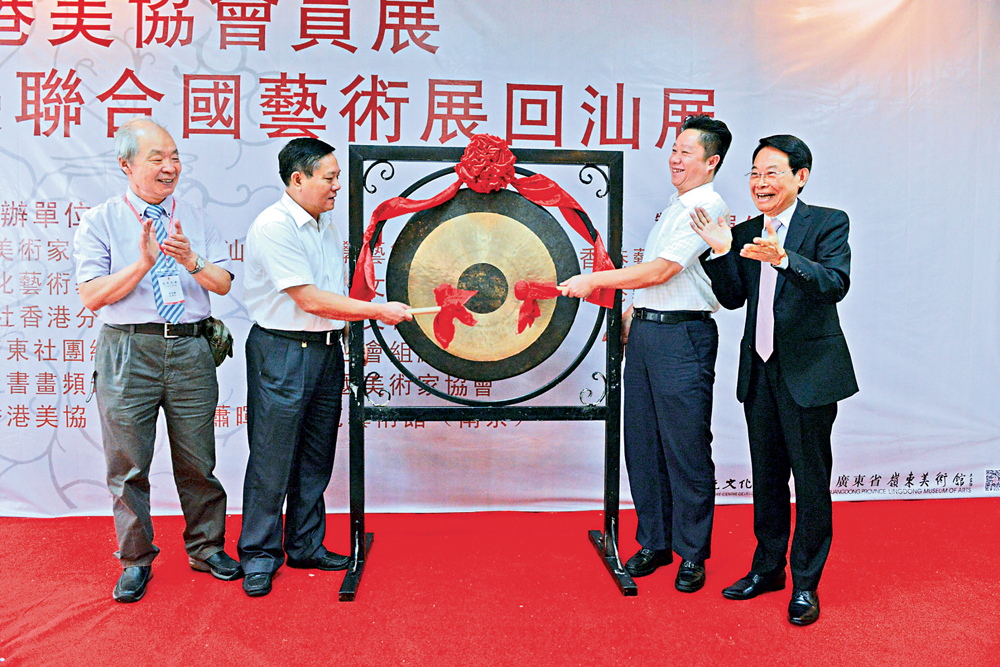 浙江大學發展委員會主席張浚生,汕頭市人大常務副主任黃俊潮,汕頭市委常委、宣傳部部長周鎮松,汕頭市委常委、統戰部部長馬逸麗,汕頭市政協副主席、市文聯主席謝鏗,廣東畫院黨委書記洪楚平,中國文聯全委會委員、中國美協理事、香港美協主席蕭暉榮等列席「回汕展」開幕式並擔任主禮嘉賓。蕭暉榮和香港美協常務副主席朱達誠陪同黃俊潮和周鎮松為展覽開幕鳴鑼。