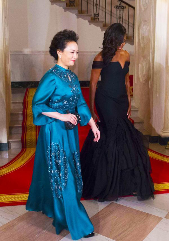 美國第一夫人米歇爾的服裝由華裔美籍設計師王薇薇設計。王薇薇在Twitte上寫道:「身為華裔美國人,能為第一夫人設計接待習近平主席與彭麗媛夫人的國宴造型,我深感榮幸。」