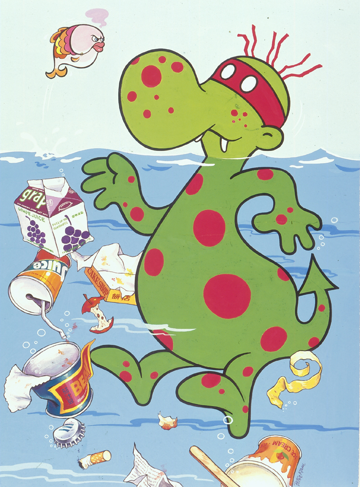 圖:甘柏榮原創作品,八十年代初清潔香港運動之「垃圾蟲」經典海報