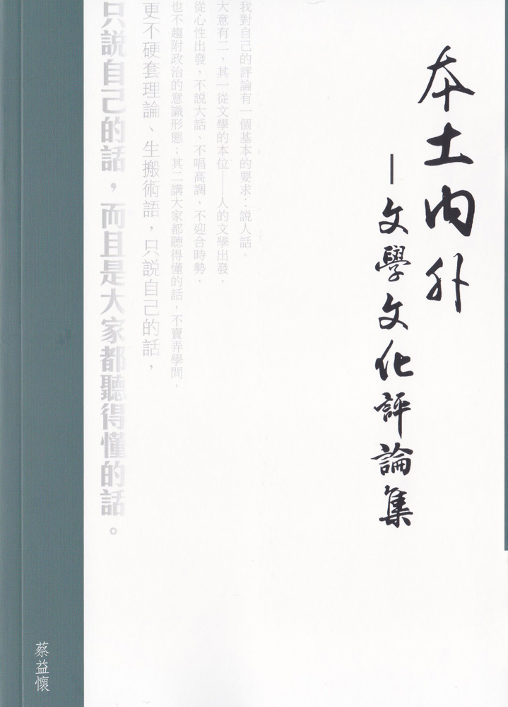 圖:蔡益懷最新文集《本土內外—文學文化評論集》,由香港文學出版社出版