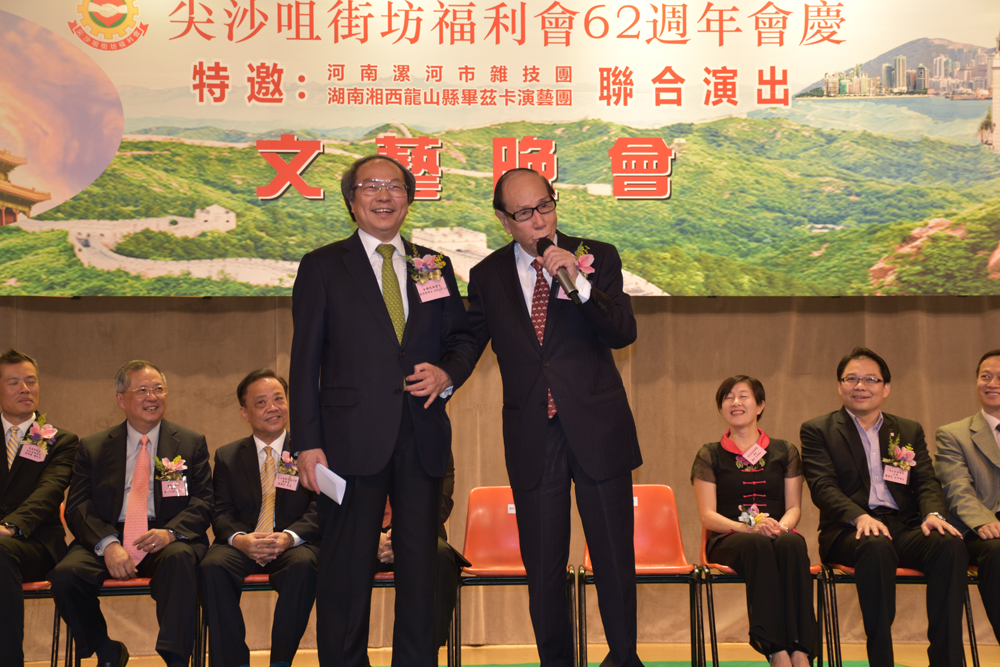 【大公報訊】記者牛真諦報道:尖沙咀街坊福利會日前在九龍尖沙咀會堂舉行中華人民共和國成立66周年暨該會62周年會慶文藝晚會。理事長蘇仲平、監事長林祖光陪同油尖旺民政事務專員蔡亮、中聯辦九龍工作部協調處處長林琨琅、全國政協常委戴德豐、香港立法會議員張宇人、梁美芬,油尖旺區議會主席鍾港武等主禮嘉賓,共賀祖國華誕。