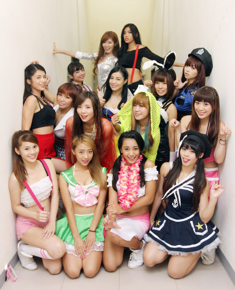 中華職棒11日在桃園棒球場進行Lamigo桃猿與義大犀牛的賽事,中場時每名Lami Girls穿起這幾年不同的表演服登場演出 中央社